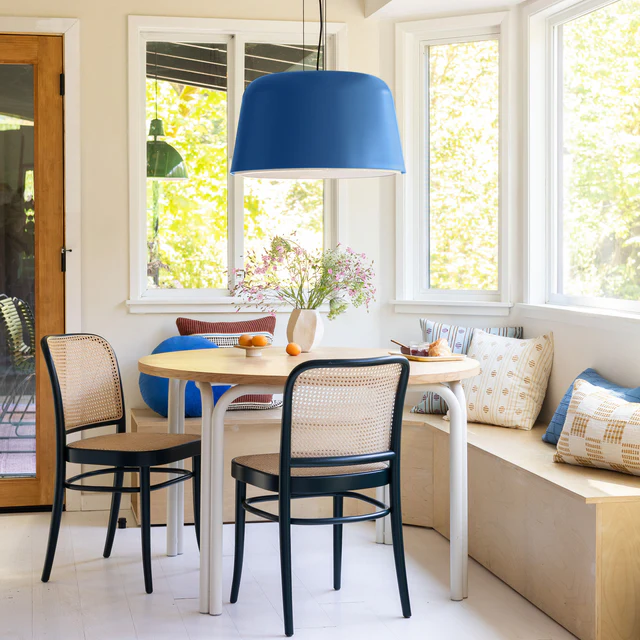 This lightweight rattan chair is handcrafted using revolutionary steam bending technology. Elegantly designed, durable, and incredibly comfortable, the chair features a padded seat, a woven rattan backrest, and a sleek, flowing frame, making it a perfect complement to both modern and traditional dining tables.